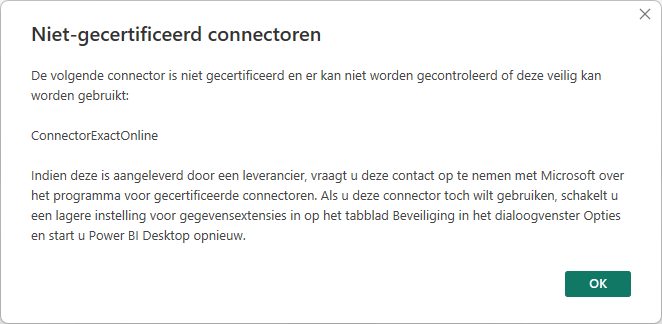 SupportCategorie: Power BI Connector AlgemeenMelding ‘niet-gecertificeerde connectoren’ in Power BI Desktop